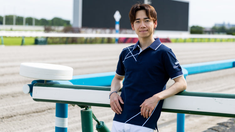 Made in Japan 100% cotton short-sleeved polo shirt inspired by horse racing uniforms.
